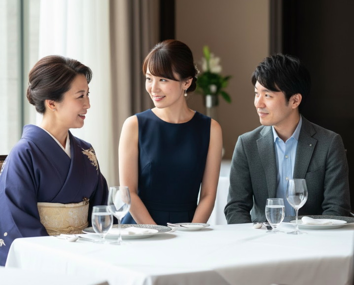 高級ホテルのレストランや格式高い料亭であれば、男性はジャケット着用、女性はワンピースやきれいめのセットアップなど、フォーマルに近い服装が求められます。