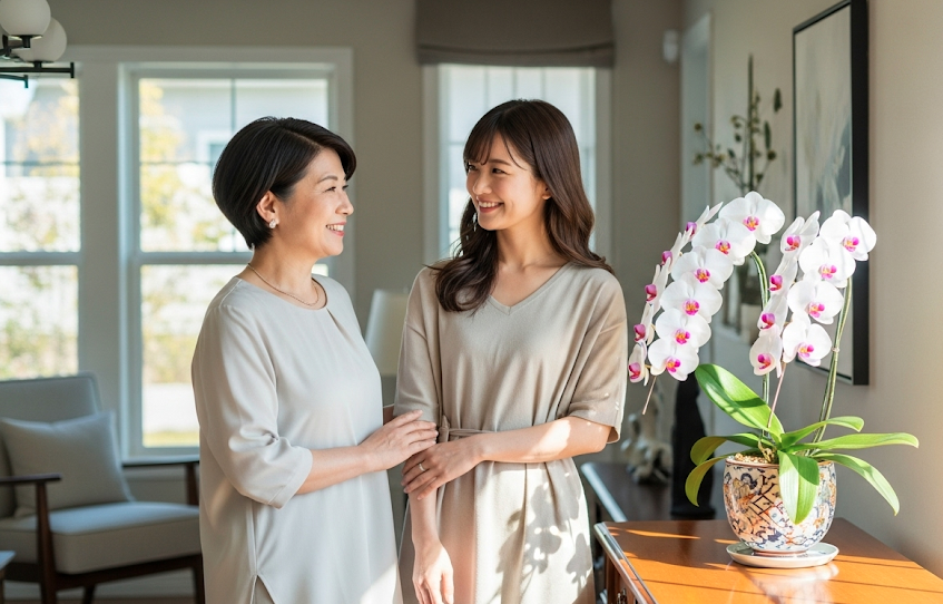 あなたの選んだ一鉢の胡蝶蘭が、義母の新しい家を明るく照らし、たくさんの幸福を運び込んでくれることを、心から願っています。