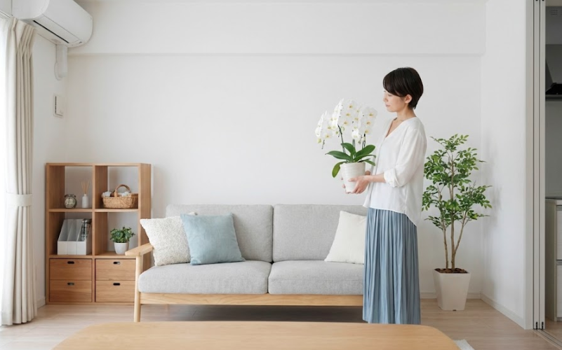また、胡蝶蘭は香りがほとんどなく、花粉も飛びにくいため、清潔感のある新しい家のリビングに置くのに最適です。