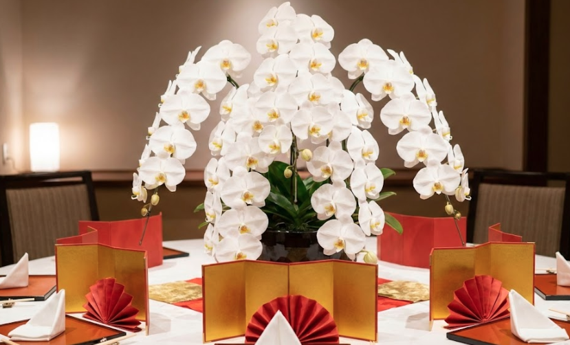- 胡蝶蘭は香りが少なく花粉も落ちにくいため会食の席でも安心できる