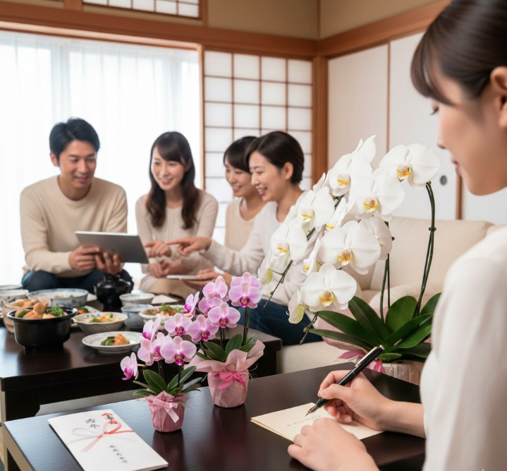 また、手間をかけずに手配でき、お祝いの席を華やかに彩るプレゼントとして最適な胡蝶蘭についてもご紹介します。