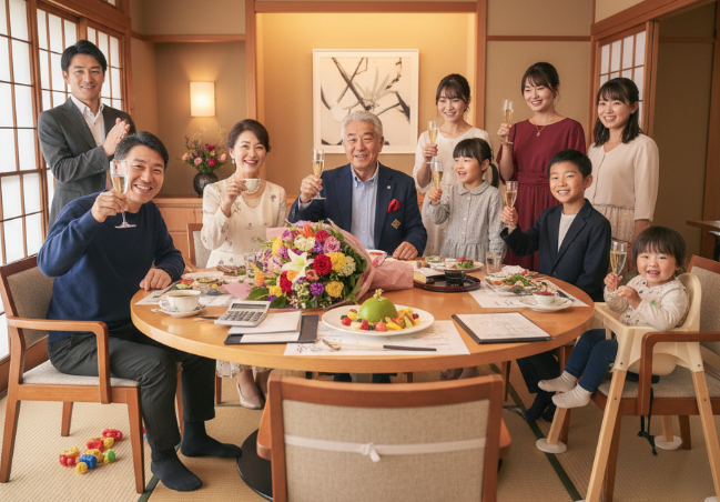 還暦祝いは、親への感謝を示すと同時に、子供たち家族の絆を再確認する良い機会でもあります。