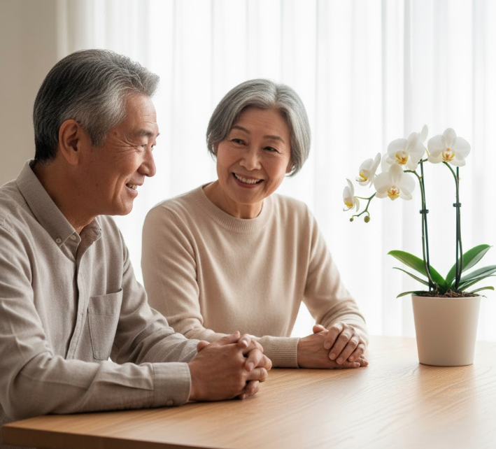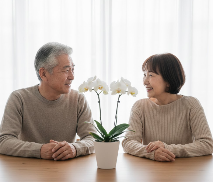 特に、敬老の日にミニ胡蝶蘭を贈るという選択肢は、見た目の美しさだけでなく、贈る側と贈られる側の双方に多くのメリットがあるため大変おすすめです。花言葉が持つ素晴らしい意味や、高齢の方でも負担なく楽しめる育てやすさなど、選ばれる理由はひとつではありません。また、住環境の変化により、大きな観葉植物や鉢植えを置くスペースがないご家庭でも、場所を取らずに華やかさを演出できる点は大きな魅力といえるでしょう。