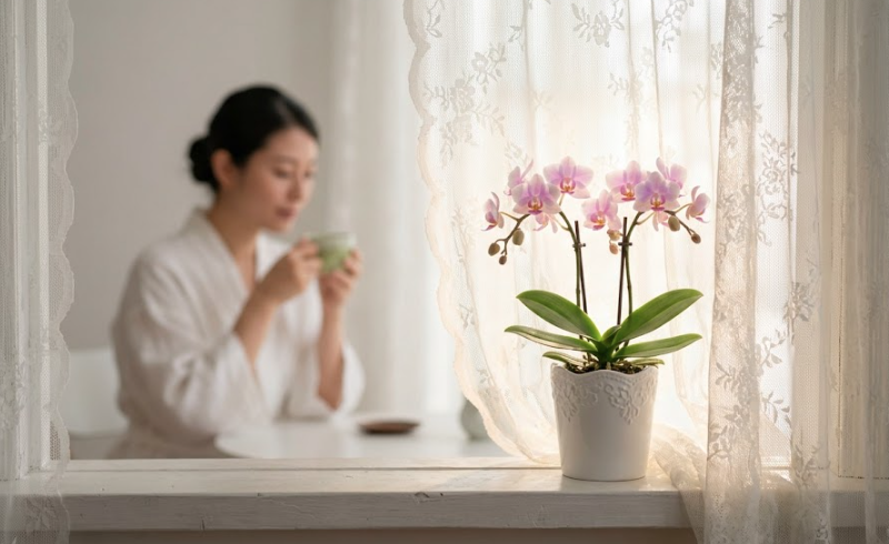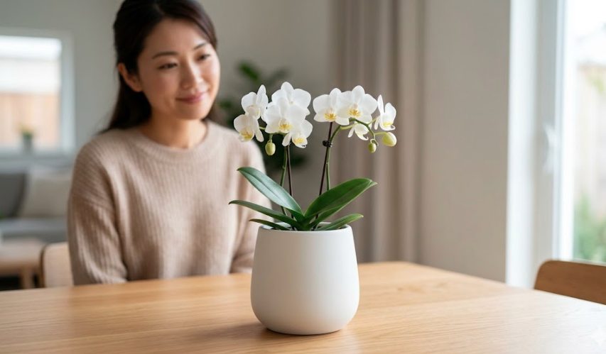 次に、相手がどこにその花を飾るかをイメージしてみましょう。ミニ胡蝶蘭といっても、品種によってボリューム感は異なります。例えば、コンパクトな「マイクロ胡蝶蘭」と呼ばれるさらに小さなタイプなら窓際に、3本立ちのような少しボリュームのあるミディタイプならリビングのセンターテーブルに映えます。