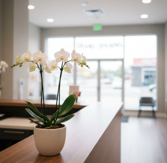 この価格帯のミニ胡蝶蘭は、花の数も多く、ラッピングや立て札を付けても十分に存在感があり、受付や応接室に飾るのにふさわしい品格を備えています。