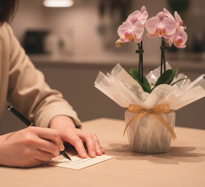 最高のミニ胡蝶蘭を選んだら、最後の仕上げとして、その贈り方にも少しだけ心を配ってみましょう。