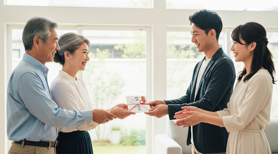 例えば、住宅ローンの頭金や諸費用の一部を親が援助している場合は、お祝い金を少なめにするか、あるいは「これがお祝いだから」として別途現金は贈らないケースも少なくありません。