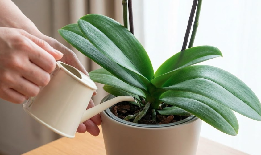 水やりについては、鉢の中の土や水苔が完全に乾いてから、コップ一杯程度の水を与えるだけで十分です。