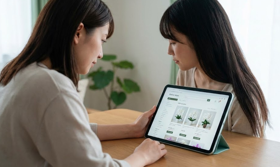 次に、「種類と価格」のバランスです。実店舗ではスペースの都合上、置いてある胡蝶蘭の種類やサイズが限られてしまいます。しかし通販サイトであれば、3本立ち、5本立ちといったサイズの違いから、白、ピンク、大輪、ミディといった品種まで、豊富なラインナップから予算に合わせて選ぶことができます。また、中間マージンをカットしているため、同等の品質のものを実店舗よりも割安な価格で購入できることが多いのも魅力です。