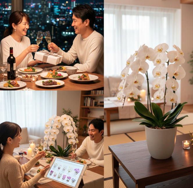 心を込めて選んだ胡蝶蘭は、昇進祝い 夫 食事の席を美しく彩り、夫の心に深く残る特別な贈り物となるでしょう。