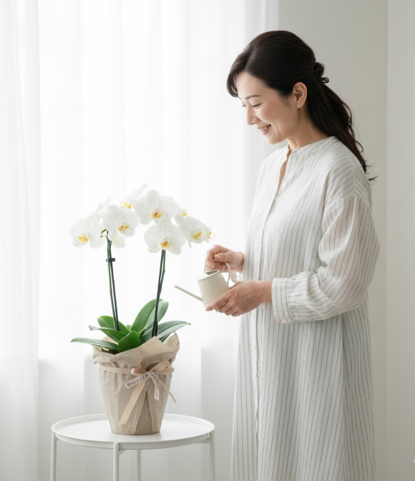 「根付く」という縁起の良さと、清潔で美しいという実用的なメリットを兼ね備えた胡蝶蘭の鉢植え。それは単なる飾りではなく、家族の新しい歴史がその土地でしっかりと育まれていくことへの祈りが込められた、意味深い贈り物なのです。この意味を添えて贈ることで、親御さんはより一層、その胡蝶蘭を愛おしく感じてくれることでしょう。