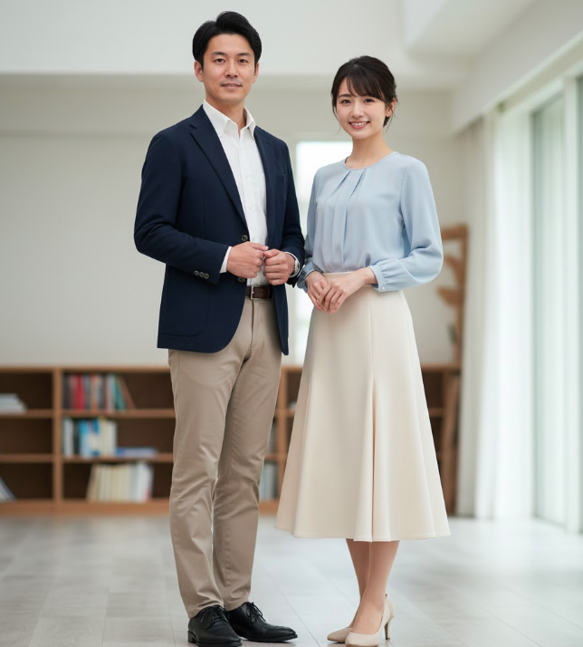 新築祝いの服装では「清潔感」と「上品さ」が何よりも重要視されます。