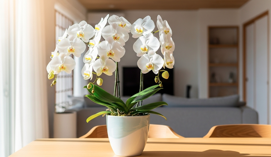 まだ家具も少なく、殺風景になりがちな新しい家に、一鉢の胡蝶蘭があるだけで、その空間は一気に見違えるほど華やかで、格調高い雰囲気になります。