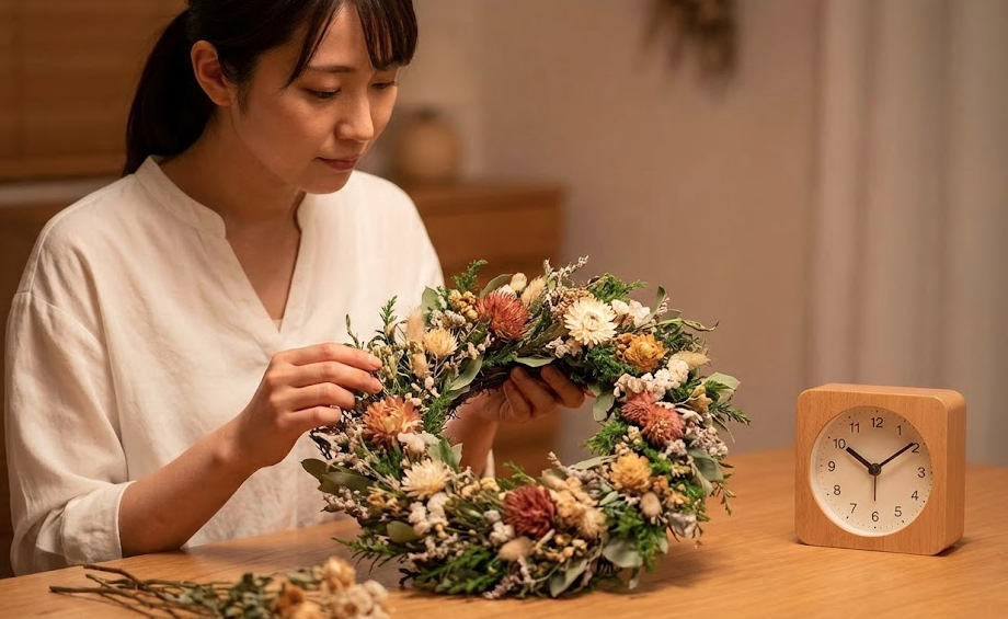 インテリア雑貨の中でも、時計やフラワーリースは新築祝いの手作り品として比較的ポピュラーなアイテムです。これらは実用性と装飾性を兼ね備えており、デザイン次第では新居の素敵なアクセントになります。