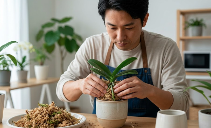 また、ちょっと勇気がいる「古い水苔の除去と根の整理方法」から、「新しい鉢への植え替えの手順」まで、手術のように繊細な作業をステップバイステップで解説しますね。