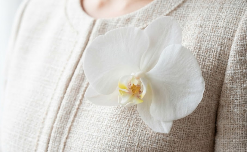 そこに胡蝶蘭のコサージュを添えることは、単なるオシャレ以上の意味があります。