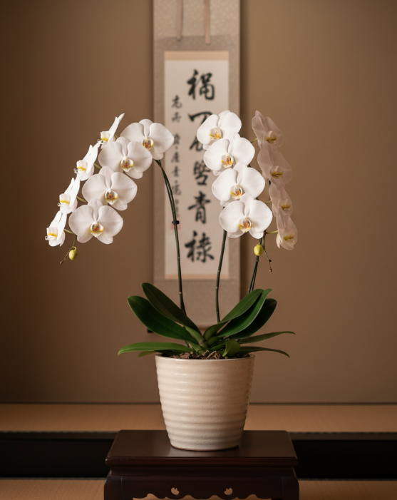 例えば、大きな鉢植えを置くスペースがあまりないかもしれない場合は、少し小ぶりでも質の良いミディ胡蝶蘭を選ぶという選択も素敵です。